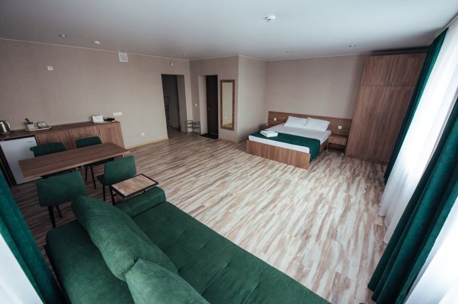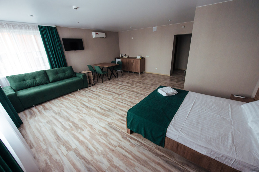 Семейный - уютный, светлый четырехместный номер, для комфортного размещения семьи или компании взрослых. Номер расположенный на первом этаже гостевого дома с видом на море. В номере к вашим услугам: - двухспальная кровать - двухместный диван - шкаф для одежды - журнальный столик - кондиционер - холодильник - чайная станция - посуда - сушилка для белья -телевизор - Wi-Fi (как в номерах, так и на всей территории) - санузел (душ, умывальник , туалет, принадлежности для душа, полотенца, фен) Имеется возможность добавить дополнительные места – по запросу. Предоставление детских принадлежностей (детская кровать, стульчик для кормления) – по запросу.
