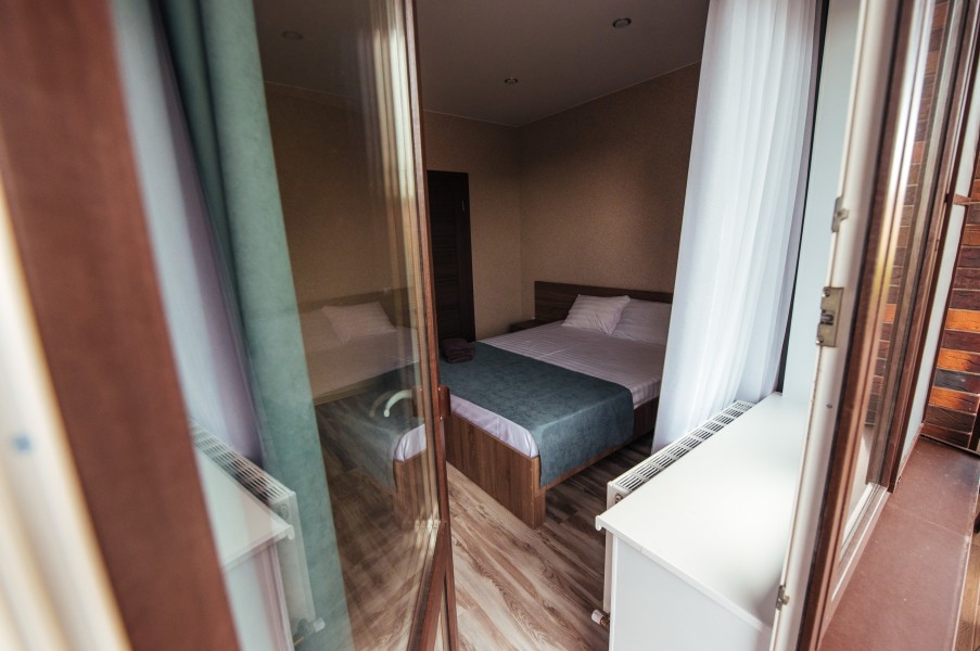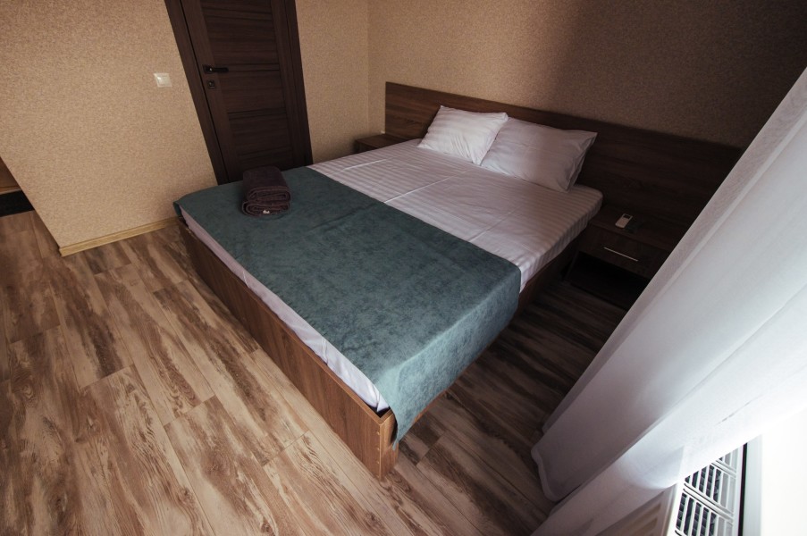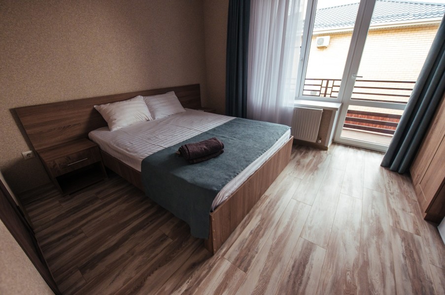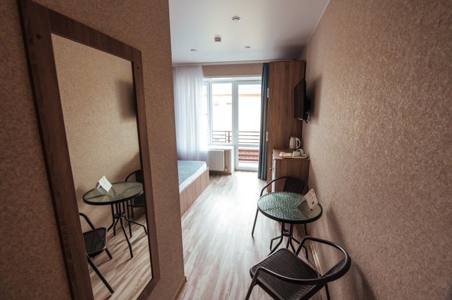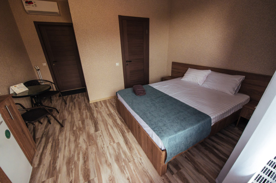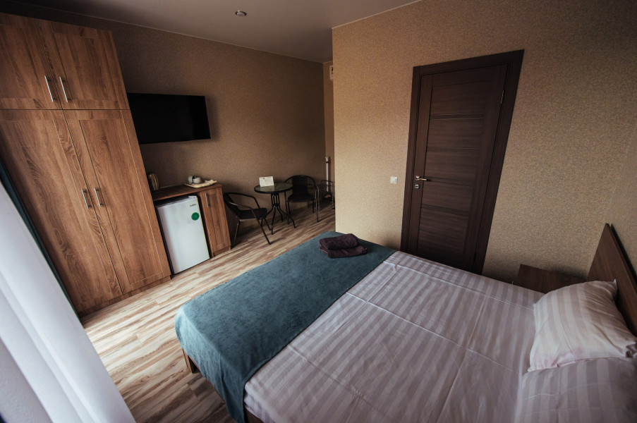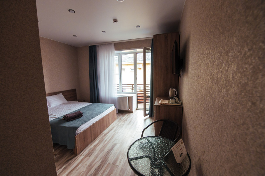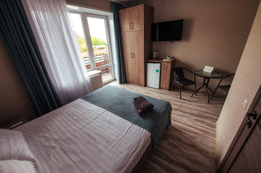 Стандарт – комфортный, двухместный номер. Номер на втором этаже имеет собственный балкон с прекрасным видом во двор. В номере к вашим услугам: - двухспальная кровать - шкаф для одежды - журнальный столик - кондиционер - холодильник - чайная станция - посуда - сушилка для белья -телевизор - Wi-Fi (как в номерах, так и на всей территории) - санузел (душ, умывальник , туалет, принадлежности для душа, полотенца, фен)