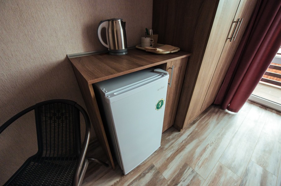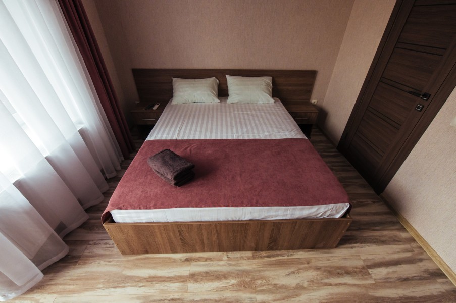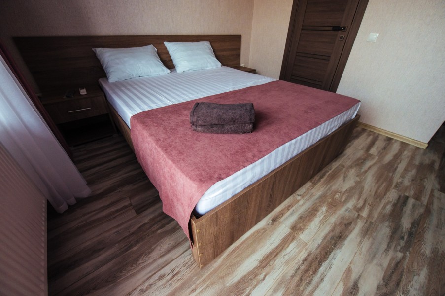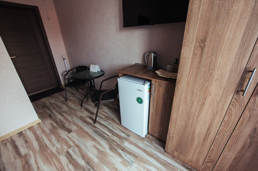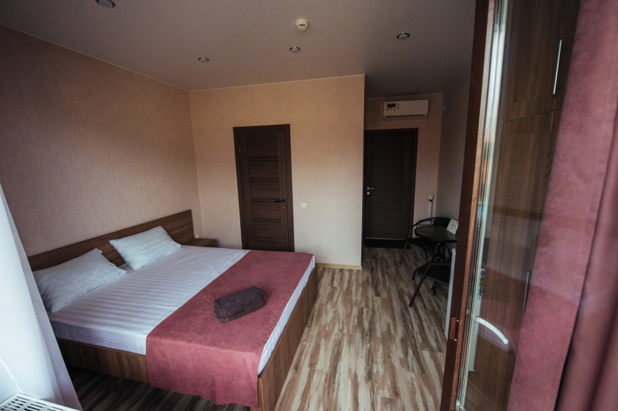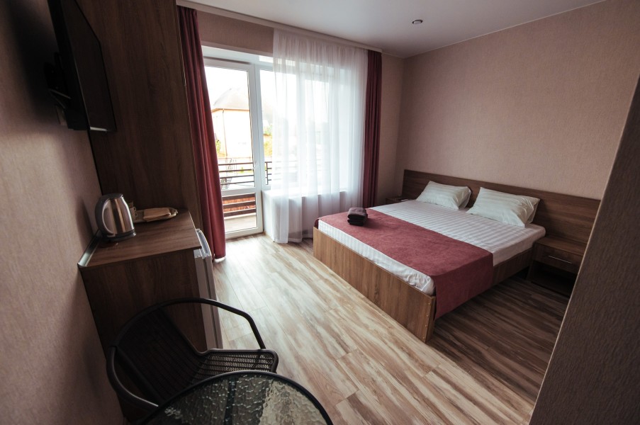 Стандарт – комфортный, двухместный номер. Номер на втором этаже имеет собственный балкон с прекрасным видом во двор. В номере к вашим услугам: - двухспальная кровать - шкаф для одежды - журнальный столик - кондиционер - холодильник - чайная станция - посуда - сушилка для белья -телевизор - Wi-Fi (как в номерах, так и на всей территории) - санузел (душ, умывальник , туалет, принадлежности для душа, полотенца, фен)